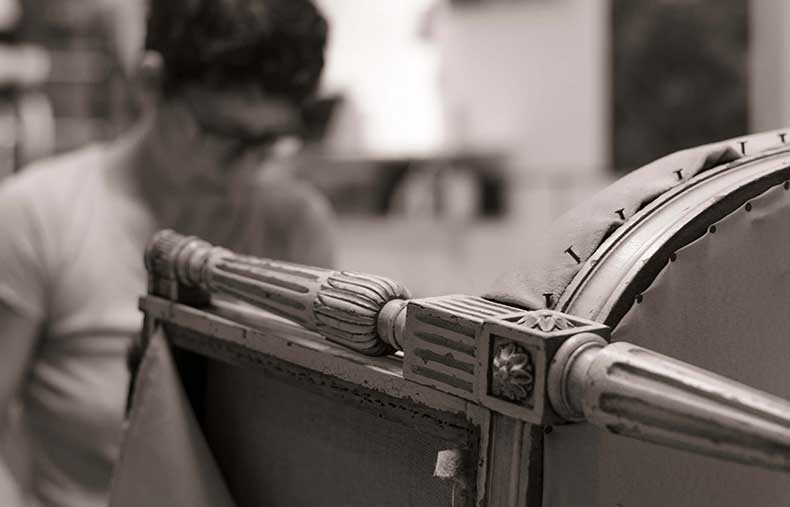 Après un apprentissage en Alsace, un bac pro à Neufchâteau et un poste de formatrice à l’AFPIA à Liffol le Grand, cela fait depuis 2011 que Claire travaille les matières nobles du garnissage traditionnel.